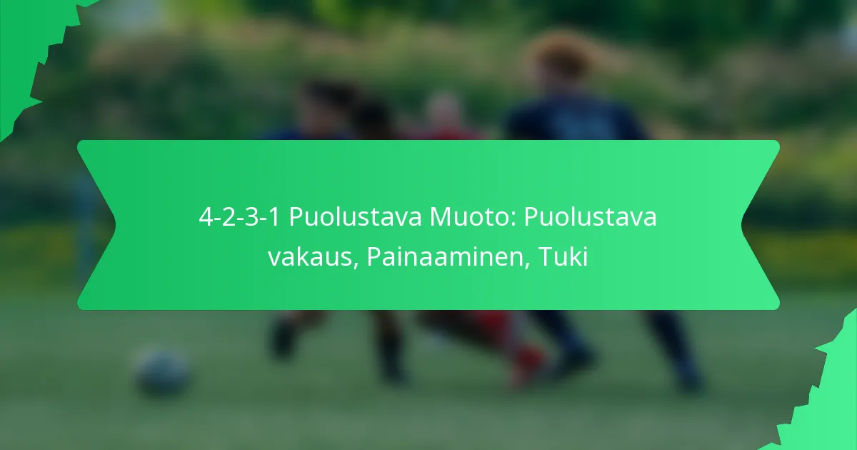 4-2-3-1 puolustusmuotoilu on jalkapallon taktinen asettelu, joka korostaa puolustuksen vakautta samalla kun se mahdollistaa tehokkaan prässin ja tuen hyökkäyksessä. Tasapainoisella rakenteella, johon kuuluu neljä puolustajaa, kaksi keskikenttäpelaajaa, kolme hyökkäävää keskikenttäpelaajaa ja yksi hyökkääjä, se mahdollistaa joukkueiden säilyttää tiiviin muodon ja reagoida nopeasti vastustajan uhkiin. Tämä muotoilu ei ainoastaan paranna puolustuksen organisaatiota, vaan myös helpottaa nopeita siirtymiä hyökkäyspeliin.