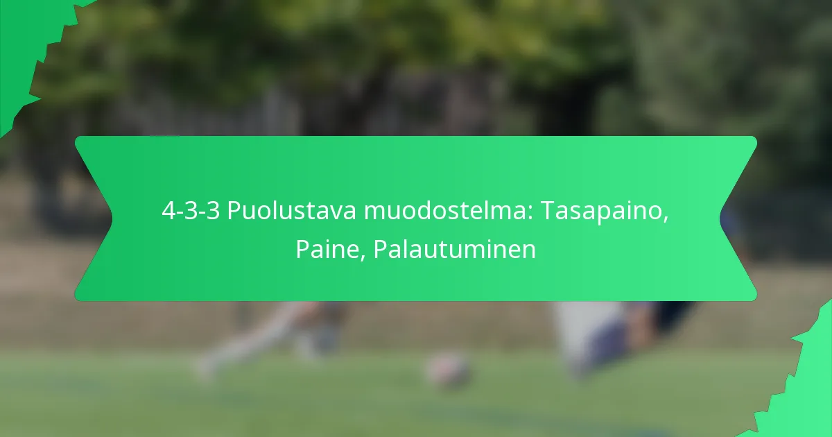 4-3-3 puolustusmuotoilu on jalkapallossa taktinen lähestymistapa, joka tasapainottaa vahvan keskikentän, tukevan puolustuksen ja dynaamisen hyökkäyksen. Asettamalla neljä puolustajaa, kolme keskikenttäpelaajaa ja kolme hyökkääjää joukkueet voivat tehokkaasti painostaa vastustajia samalla varmistaen nopean palautumisen pallon menetyksen jälkeen. Tämä muotoilu ei ainoastaan paranna puolustuksen vakautta, vaan myös edistää sujuvaa siirtymistä hyökkäyksestä puolustukseen, mahdollistaen koordinoidut painostusstrategiat, jotka häiritsevät vastustajan peliä.