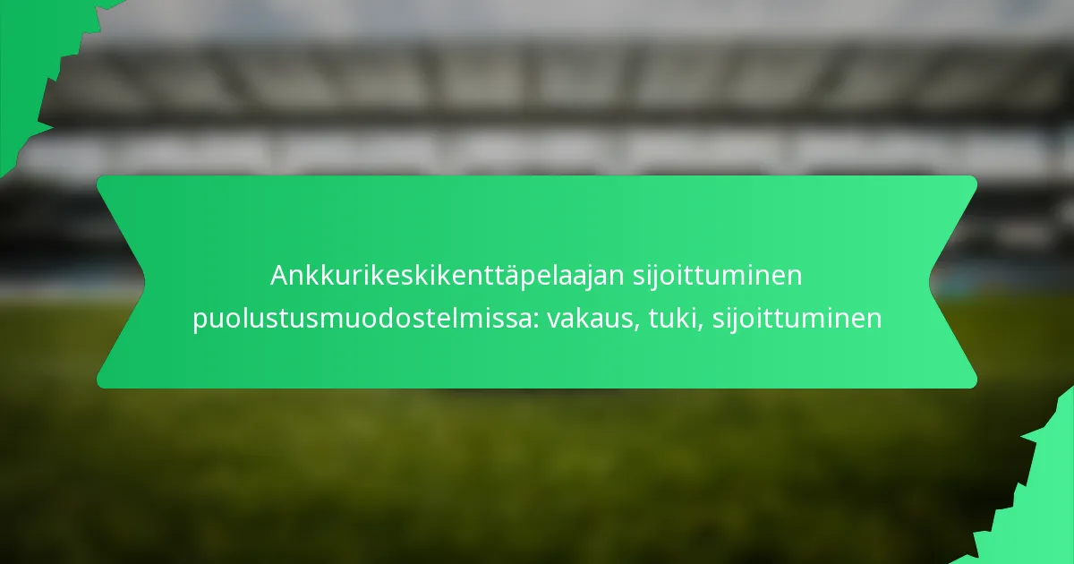 Ankkurikeskikenttäpelaaja näyttelee keskeistä roolia puolustuksen vakauden ylläpitämisessä tarjoamalla tukea puolustajille ja varmistamalla, että joukkueen muoto säilyy siirtymien aikana. Tämä asema vaatii hyvää sijoittumisen ymmärrystä, vastustajan liikkeiden ennakoimista ja tehokasta viestintää joukkuetoverien kanssa.
