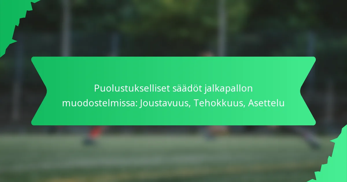 Tehokkaat puolustukselliset säädöt ovat joustavia, strategisesti sijoitettuja ja kykeneviä reagoimaan vastustajan taktiikoihin. Nämä säädöt voivat merkittävästi parantaa joukkueen puolustustehoa, mikä johtaa parempiin tuloksiin peleissä.