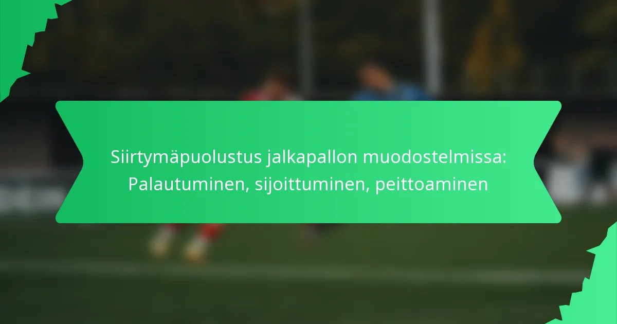 Siirtymäpuolustus jalkapallomuodostelmissa on olennaista puolustavan organisaation nopeassa palauttamisessa pallonmenetyksen jälkeen. Tämä strategia korostaa palautumista, sijoittumista ja peittoa, jotta minimoidaan vastustajien maalintekomahdollisuudet kriittisissä hetkissä. Nopealla uudelleen sijoittumisella ja viestinnällä joukkueet voivat tehokkaasti torjua hyökkäyksiä ja ylläpitää puolustuksen eheyttä.